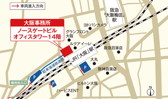 JR大阪三越伊勢丹入口の左にあるノースゲートビル オフィスタワー1階入り口よりお進みください。